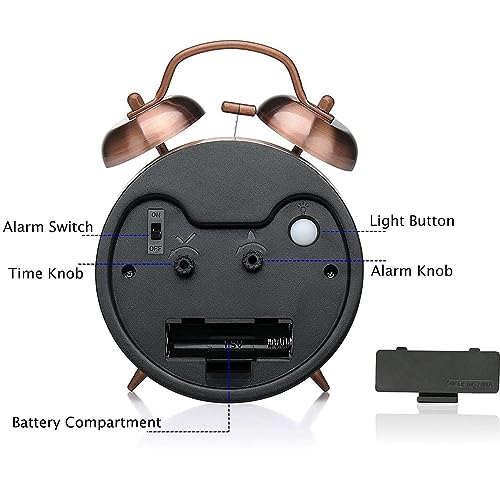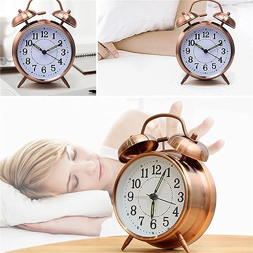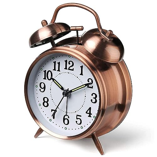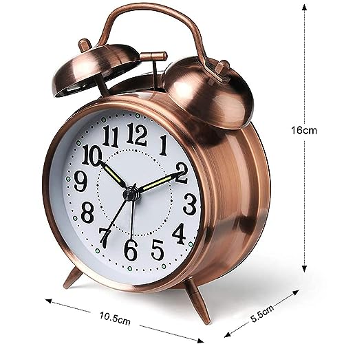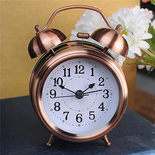 X spring - ساعة منبه أنالوج صغيرة معدنية بجرس مزدوج صامتة للطاولة والمكتب تعمل بالبطارية مع إضاءة خلفية عالية لغرفة النوم من اكس سبرينج، أحمر وبني، 10 سم