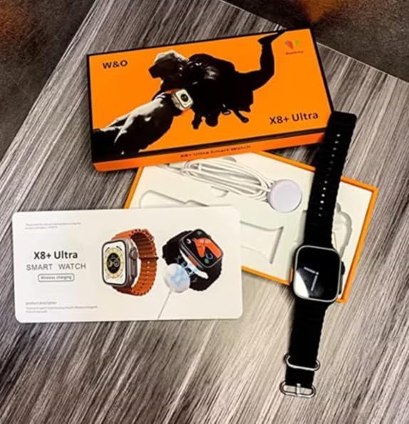 Generic - ساعة ذكيه اكس 8 بلس الترا الاصلية ( X8 + ultra ) الرد علي المكالمات - NFC - بلوتوث- بشاشة عرض تعمل دائما والة حاسبة وشحن لاسلكي بشاشة اموليد تدعم ان اف سي - اللغة العربية ( اسود )