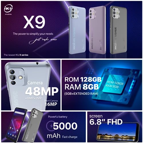 IKu - موبايل X9 بشاشة 6.8 بوصة وذاكرة رام سعة 8+5 جيجابايت + 128 جيجابايت وشبكة الجيل الرابع 4G