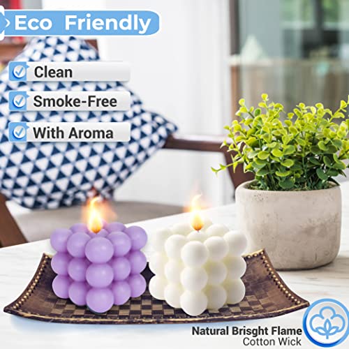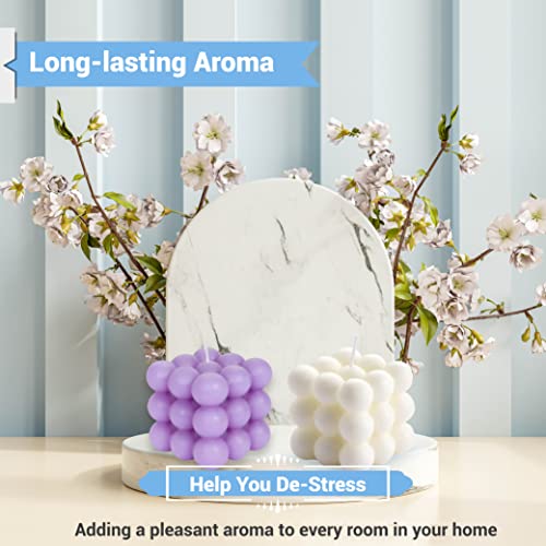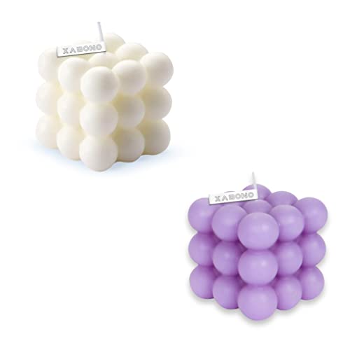 Xabono - شمعة بتصميم فقاعات، شموع بتصميم فقاعات، ديكور منزل، شموع ساطعة، شموع عصرية، شموع مكعبة مصنوعة يدويًا، لزينة غرفة النوم والحمام، طقم ديكور جمالي تجريدي، (1 أبيض و 1 أرجواني، أبيض وأرجواني)