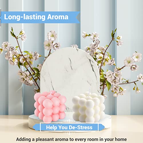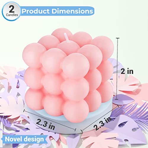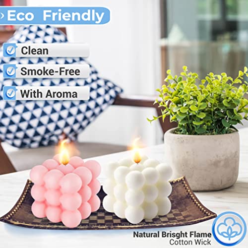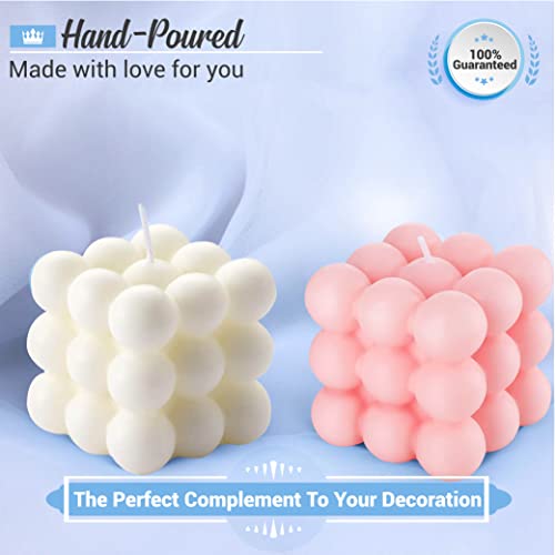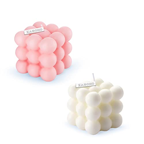 Xabono - شموع مربعة بتصميم فقاعات لتزيين المنزل، شموع عصرية مصنوعة يدويا، لغرفة النوم والحمام، مجموعة ديكور تجريدي جمالي (1 ابيض و1 وردي وابيض ووردي)