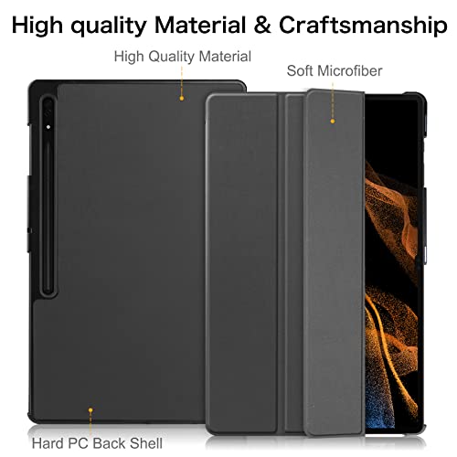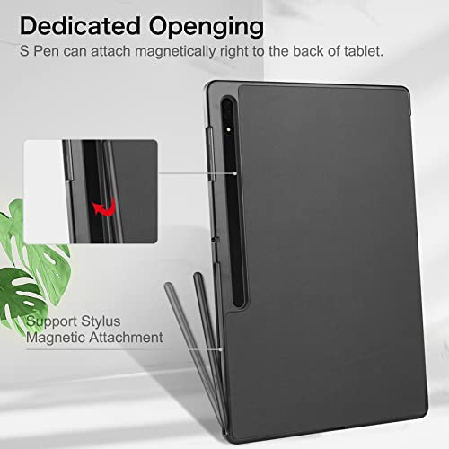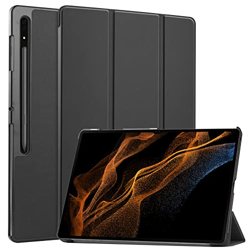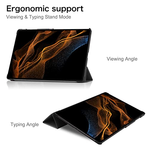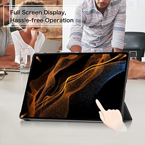 XAOAX - جراب حماية ذكي مضاد للصدمات من جلد صناعي بتصميم قابل للطي مزود بخاصية نوم - تشغيل تلقائي وحامل لقلم S بن لتابلت سامسونج جالاكسي تاب S8 الترا 14.6 بوصة 2022 SM-X900 - X906 اكس ايه او اسود
