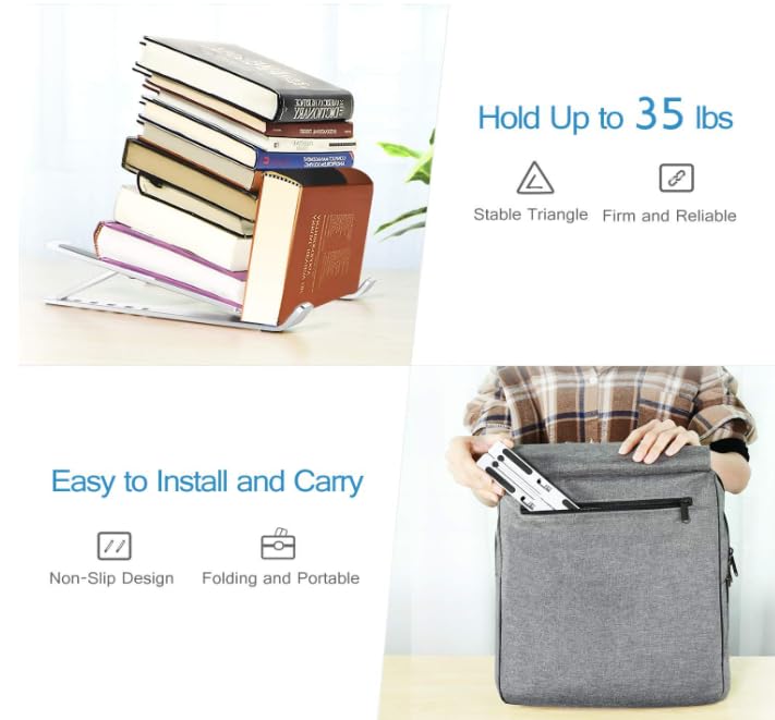 - وسائد مطاطية من السيليكون المضادة للانزلاق مع 6 مستويات قابلة للتعديل، وسهل الحمل.