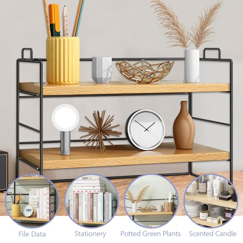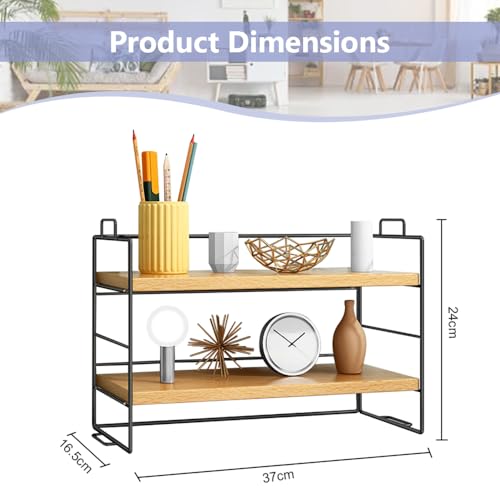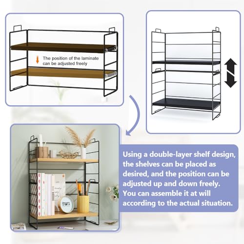 - 【منظم أرفف مكتبي مزدوج الطبقات】: يعتمد منظم رف سطح الطاولة على تصميم مزدوج الطبقات، ويمكن تعديل الأرفف بحرية لأعلى وأسفل، وهو مريح للغاية. المقاس: 37 × 16.5 × 24 سم/14.5 × 6.49 × 9.44 انش، مما يوفر لك مساحة تخزين واسعة للكتب والزخارف الزخرفية وما إلى ذلك.