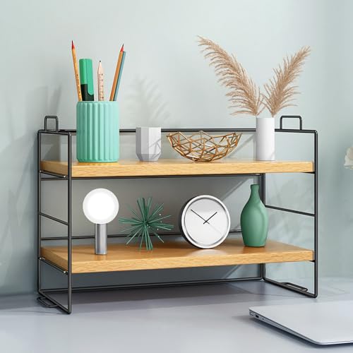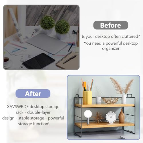 XAVSWRDE - رف تخزين مكتبي من طبقتين من اكس ايه في اس دبليو ار دي اي، رف خشبي بتصميم ريفي، رف عرض لسطح المكتب، رف كتب متعدد الاغراض قائم بذاته، حامل منظم للمكتب والمنزل
