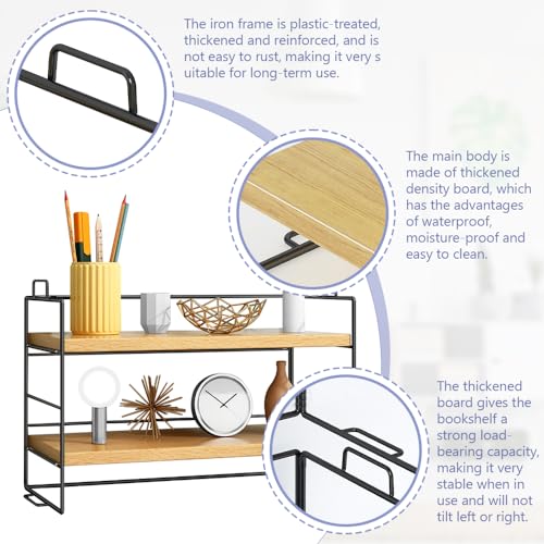 - 【لوح خشبي سميك ومادة معدنية】: منظم رف الكتب المكتبي مصنوع من لوح خشبي سميك ومواد معدنية. تتميز بمظهر أنيق ومتوافقة مع أنماط تزيين الأثاث المختلفة. كما أنها تتميز بمزايا مقاومة للماء والرطوبة وسهلة التنظيف، مما يجعلها مناسبة جدًا للاستخدام طويل الأمد.
