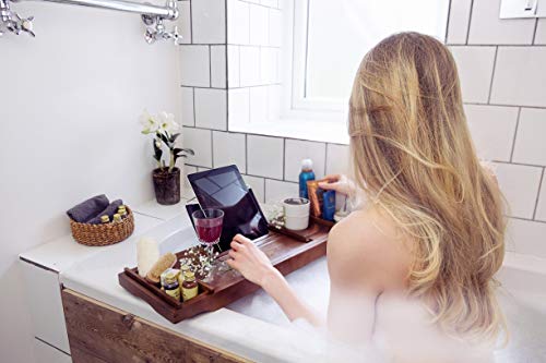 - حامل حمام لعائلتك: علبة حمام اكس سي اي مع حامل كتب قماشي قابل للإزالة مصمم ليكون به صينيتين جانبيتين ومقابض قابلة للتمدد وفتحات ملحقات. اجلب الرومانسية إلى حياتك! اختيار مثالي للذكرى السنوية أو شهر العسل أو ليلة المواعيد الرومانسية!