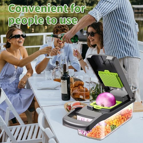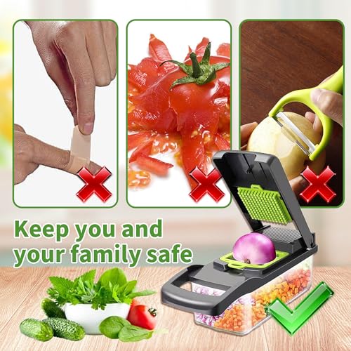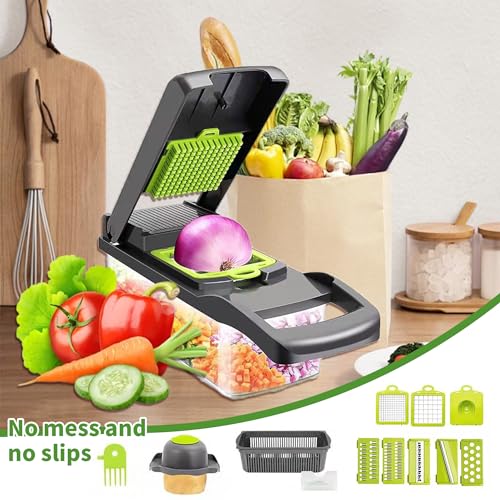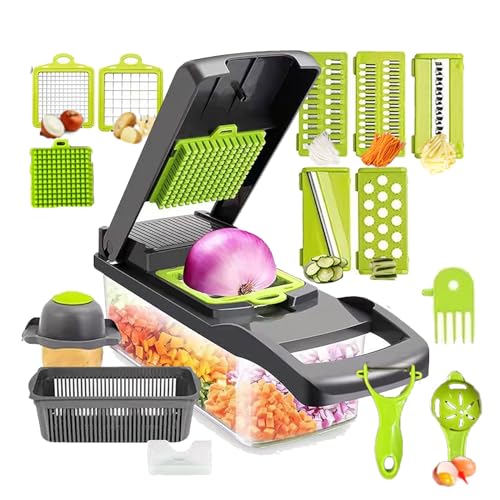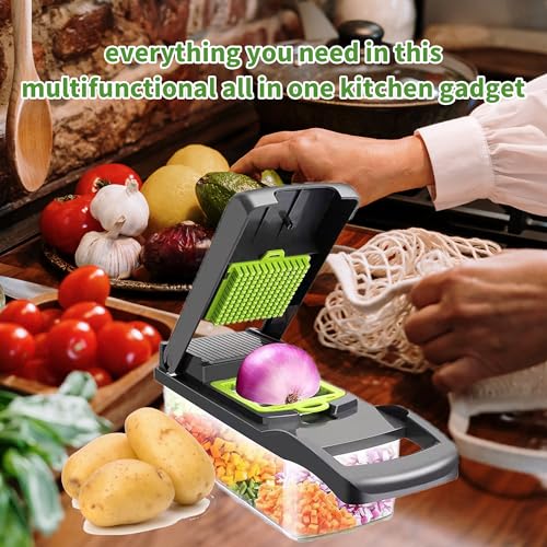 XCWMDX - قطاعة بصل احترافية 16 في 1 متعددة الوظائف، قطاعة خضروات للمطبخ مع 7 شفرات، قطاعة جزر وثوم مع عبوة من XCWMDX