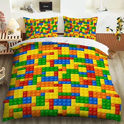 xczxc - طقم غطاء لحاف من اكس سي زد اكس سي بتصميم مربعات ملونة مقاس 2.59 × 2.20 متر من البوليستر بطباعة ثلاثية أبعاد 3D مع 2 كيس مخدة - مقاس مفرد ومزدوج، هندسي، متعدد