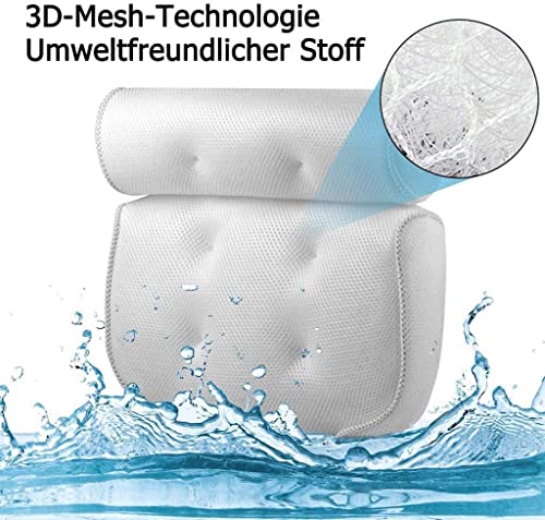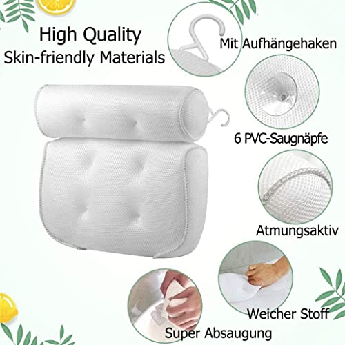 Spaceshoop - مخدة حوض الاستحمام والحمام لدعم الرأس والرقبة والكتفين، مخدة حوض استحمام ثلاثية الأبعاد مع 6 قواعد لاصق غير قابلة للانزلاق تناسب جميع مخدات حوض الاستحمام من زينايت