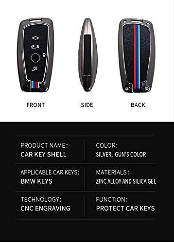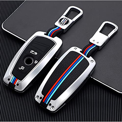 XFGJV - جراب ريموت سيارة من خليط معدني مجلفن مع حلقة حمل اكس اف جي جاي في لسيارة بي ام دبليو 3 وسلسلة 4-5 موديل 320i 530i 550i F20 F21 F30 F31 F25 F01 F02 فضي