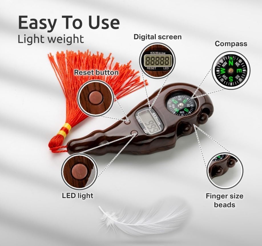 XG Store - مسبحة رقمية مع بوصلة وضوء ليلي، خرز مسبحة رقمية، عداد خرز، عداد تسبيح وعداد أصابع من اكس جي ستور، NO.2040 (متعددة الألوان)