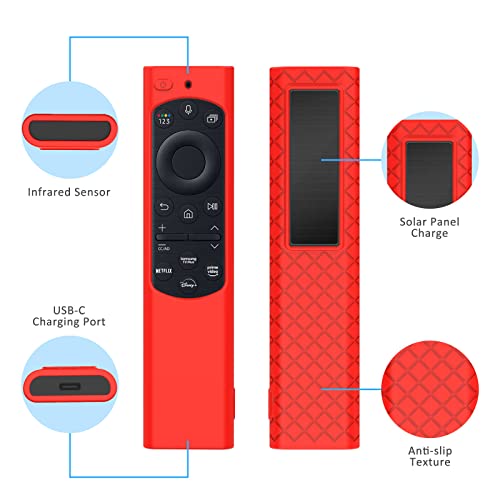 XGYCYXM - جراب حماية سيليكون لجهاز تحكم سامسونج ذكي يعمل بالطاقة الشمسية 2022 TM2280E من اكس جي واي سي واي اكس ام، متوافق مع BN59-01385 BN59-01386 BN59-01391، خفيف الوزن ومضاد للانزلاق ومقاوم للصدمات، (أحمر)