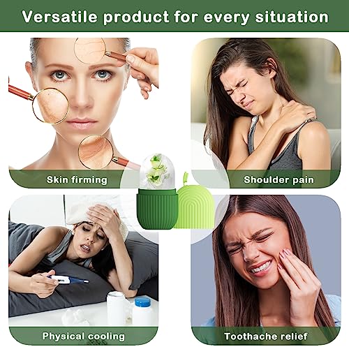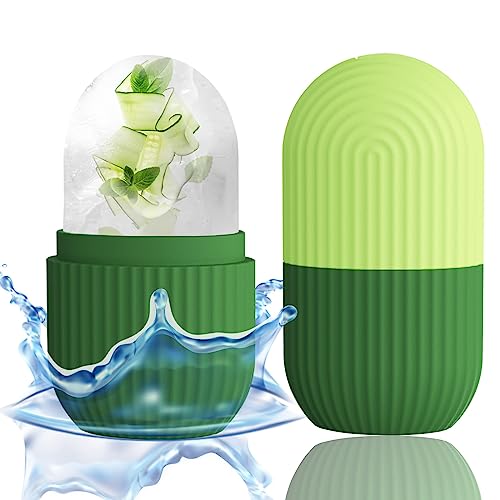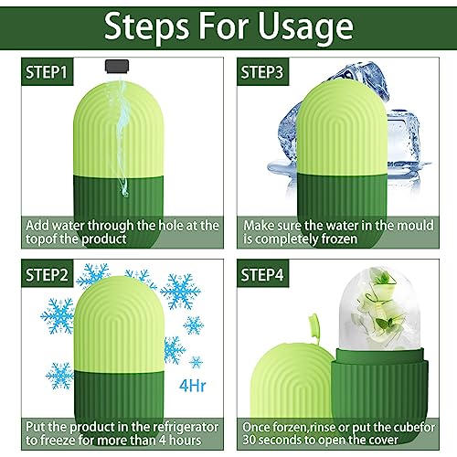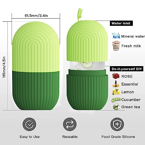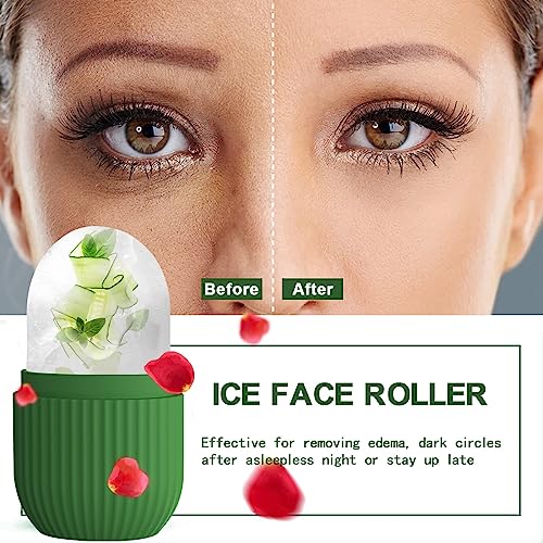 XHJRI - أداة تدليك الوجه المثلجة، بكرة مكعبات ثلج للوجه والعينين والرقبة والعناية بالبشرة، أكياس إزالة انتفاخ العين، تقلل من آلام الصداع النصفي، قالب ثلج سيليكون للتدليك قابل لإعادة الاستخدام من XHJRI، أخضر