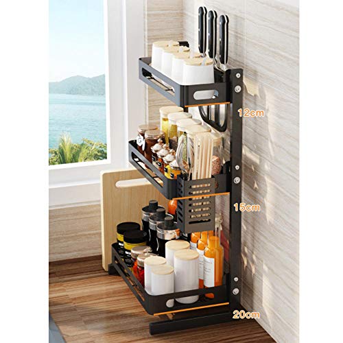 Spaceshoop - رف توابل قائم، رف تخزين بقدرة تحمل قوية وسعة كبيرة للحمام وغرفة المعيشة والمطبخ، رفوف توابل من الفولاذ المقاوم للصدأ من اكس اتش اس اس اف، أسود، 3 طبقات طراز A