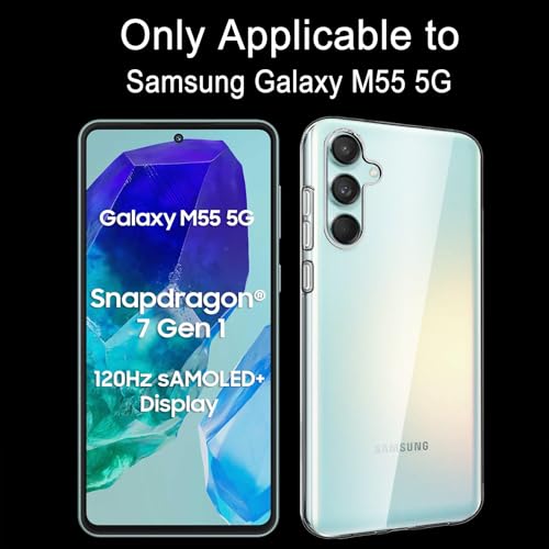 - حافظة لهاتف سامسونج جالاكسي M55 شبكة الجيل الخامس 5G فقط: 2 × حافظة شفافة من البولي يوريثين الحراري + 2 × واقي شاشة من الزجاج المقوى، مصمم خصيصًا لهاتف سامسونج جالاكسي M55 5G الذكي.