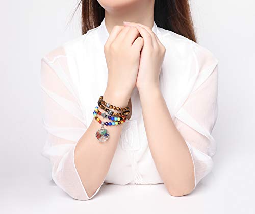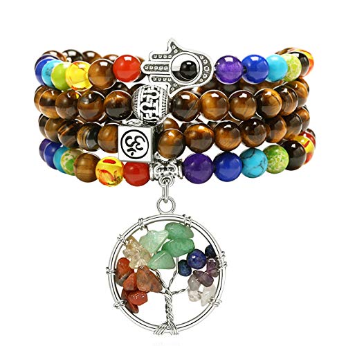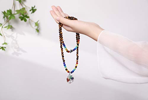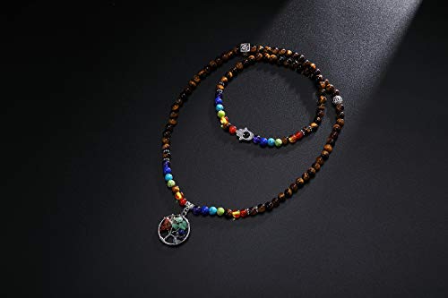 XIANNVXI - XIANNVXI 108 مالا خرز صلاة التفاف سوار 7 شاكرا شفاء كريستال اليوجا التأمل أساور قلادة الحجر الطبيعي شجرة الحياة Medium للنساء للرجال