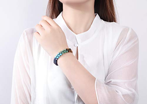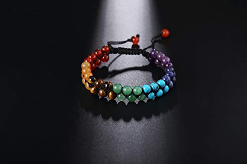 XIANNVXI - اسورة يوجا من شيانفكسي مصنوعة 7 احجار شاكرا ملونة مضفرة باحجار الكريستال العلاجية بطريقة ريكي اليابانية طبقة مزدوجة خرز الاحجار الطبيعية مناسبة كهدية للجنسين حجر