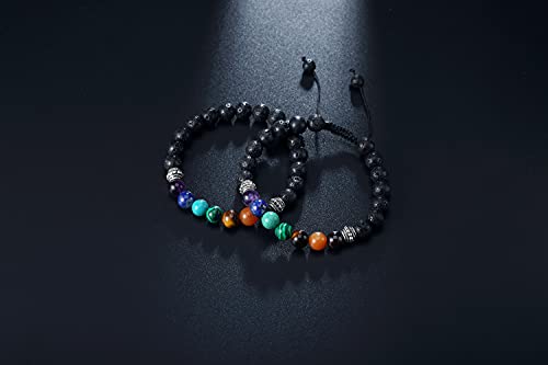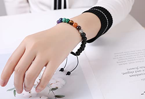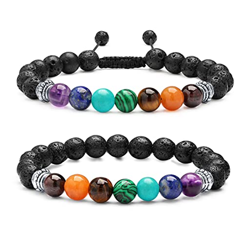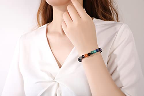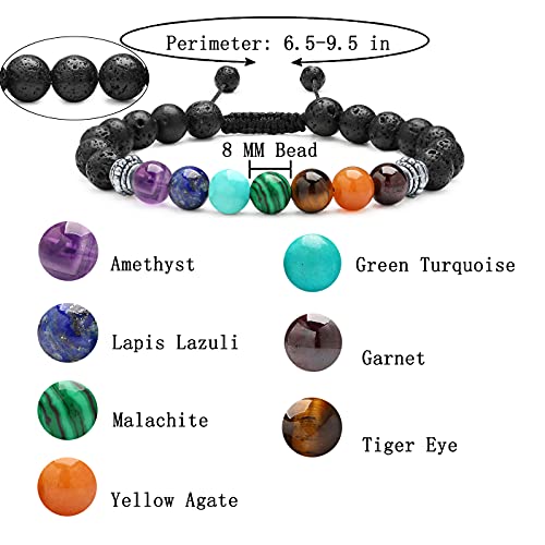 XIANNVXI - سوار خرز مرن باحجار كريستال بركانية لتخفيف التوتر والاستشفاء وجلب الطاقة الايجابية والتامل باليوجا والشاكرا للرجال والنساء من تشيانفتشي 7 حجر معدن ايه