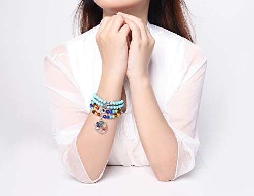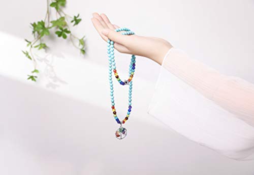 XIANNVXI - سوار بحبيبات خرز كريستالية مالا طبيعية بقدرة شفائية علاجية لليوجا والتامل 108 قطعة و7 قطع شاكرا من شيانفشي Medium كريستال للنساء للرجال