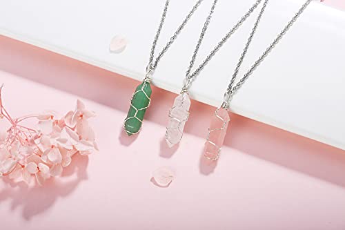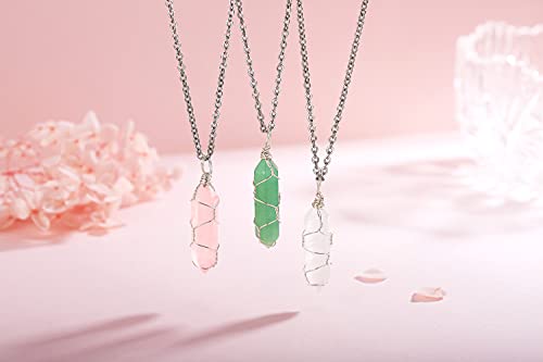 XIANNVXI - سلسلة بدلاية مدببة الشكل من حجر الكريستال بسلك ملفوف مجوهرات احجار كريمة طبيعية وكوارتز للشفاء والعلاج الروحي وريكي للنساء والبنات اكسيانفكسي معدن