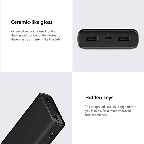 XIAOMI - باور بانك شاومي مي 50 واط 20000 مللي أمبير في الساعة: بطارية محمولة عالية السعة، شحن سريع ثنائي الاتجاه، مخرج 74 واط في الساعة، تصميم ثلاثي المنافذ، حماية متقدمة | لمسة نهائية سوداء متينة