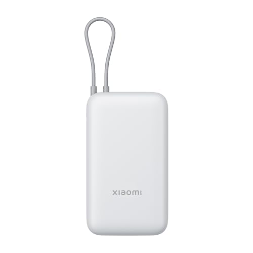 XIAOMI - باور بانك من شاومي ببطارية ليثيوم آيون و منافذ USB تايب سي و تايب ايه مع كابل مدمج للهواتف الذكية و الأجهزة اللوحية، 3 منافذ، رمادي فاتح