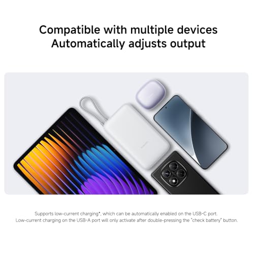 - [صغير الحجم حتى مع سعة كبيرة] يتميز التصميم بسعة كبيرة تصل إلى 20000 ميلي امبير في الساعة وهو مضغوط. متوافق مع شحن شاومي 15 2.5 مرة، وشحن آيفون 16 برو 4 مرات، وشحن شاومي باد 7 1.9 مرة.