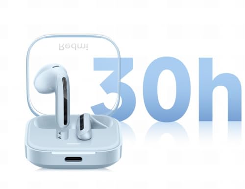 Xiaomi - سماعة بلوتوث لاسلكية ريدمي بودز 6 اكتيف بتقنية TWS، عمر بطارية طويل، 5 أنماط ضبط، سماعة لاسلكية بتقنية بلوتوث 5.4 من شاومي، النسخة الصينية (لون أزرق)