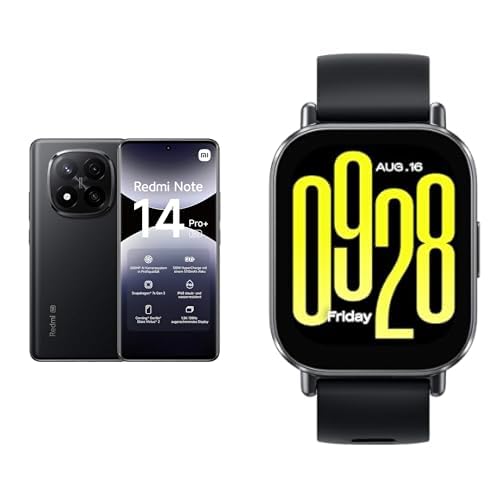 XIAOMI - موبايل ذكي شاومي ريدمي نوت 14 برو+ جيل خامس 5G، ذاكرة رام 12GB تخزين 256GB شاشة اموليد 6.67 بوصة كاميرا 200MP وساعة ريدمي ووتش 5 أكتيف ذكية بشاشة LCD 2.0 بوصة، بطارية 18 يوم وأكثر من 140 وضع رياضي