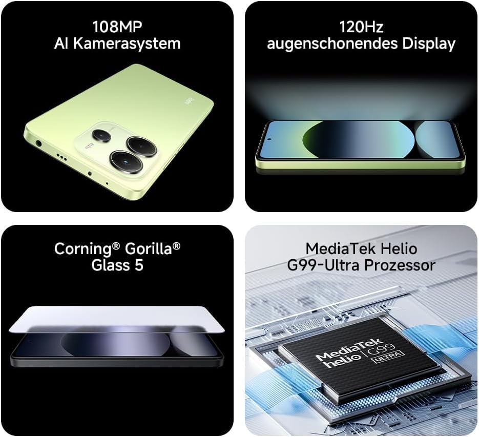 XIAOMI - موبايل شاومي ريدمي نوت 14 ذاكرة 8+256 جيجابايت بنظام كاميرا بالذكاء الاصطناعي بدقة 108 ميجابكسل وبطارية 5500 مللي أمبير في الساعة وشاشة حماية للعين 120 هرتز ووظائف ذكاء اصطناعي، لون أسود