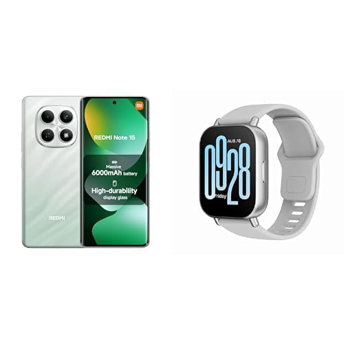 XIAOMI - هاتف ذكي ريدمي نوت 15 (6+128 جيجابايت)، كاميرا 108 ميجابكسل، اخضر فوريست، ضمان محلي لمدة 18 شهرًا + ساعة ريدمي ووتش 5 اكتيف الذكية المجانية، بطارية 18 يوم، اكثر من 140 وضع رياضي