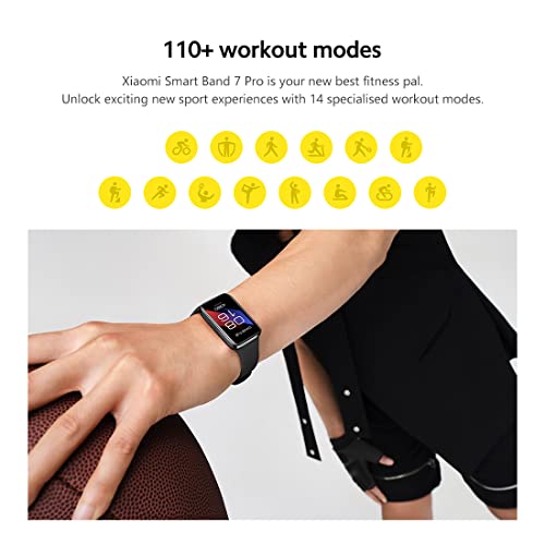XIAOMI - ساعة سمارت باند 7 برو للرجال بشاشة اموليد 1.64 بوصة من شاومي، ساعة بلوتوث مع نظام تحديد المواقع ومراقب معدل ضربات القلب، 110 وضع رياضي، مقاومة للماء حتى 5 ايه تي ام، أسود