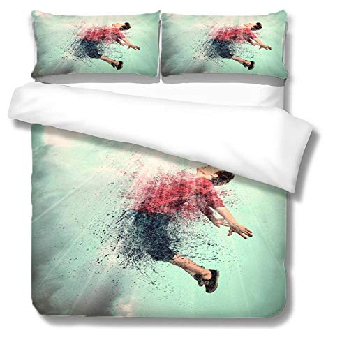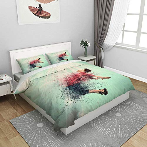 XIAZILH - طقم غطاء لحاف سوبر كينج مع سحاب اغلاق 220 × 230 سم بطباعة كريتيف بوي من 3 قطع مع 2 كيس وسادة 50 × 75 سم، طقم غطاء لحاف من المايكروفايبر المغسول فائق النعومة من شيازيله، بوليستر، ورقة الشجر