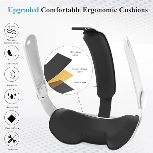XICEN - سوار رأس مريح لنظارة كويست 3 / كويست 3 اس، سوار رأس مريح لملحقات اوكيولوس/ميتا كويست 3/كويست 3 اس - سوار ايليت قابل للتعديل وخفيف الوزن مع وسادة اسفنجية من البولي يوريثان لتعزيز الدعم من اكسين