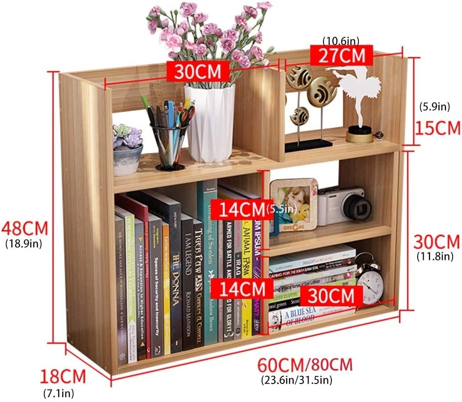 XIEAE - رف كتب مكتبي من شياي، مكتبة قابلة للتعديل، رف عرض، رف تخزين مكتبي، منظم مكتبي خشبي، رف تخزين متعدد الأغراض لسطح العمل