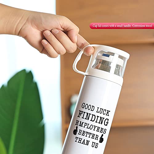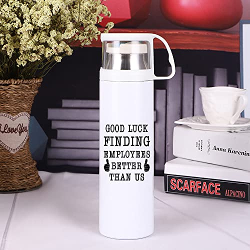 XiErSi - كوب وثيرموس حراري سعة 14 اونصة ملائم كهدية وداع للرئيس عند الرحيل للجنسين ومزين بطباعة عبارة ood Luck Finding Better Employees Than Us من زيرسي ستانلس ستيل أبيض اكسيرسي