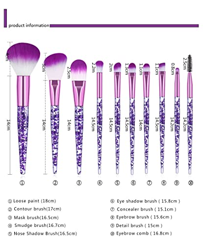 XiFiMak - مجموعة فرش مكياج احترافية بمقبض لامع أنيق لمزج بودرة الوجه وكريم الأساس وأحمر الخدود وظلال العيون وتحديد العيون والشفاه من اكسيفيماك، لون أرجواني، مجموعة من 10 قطع