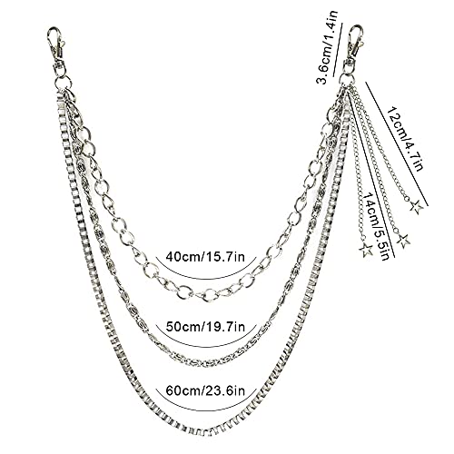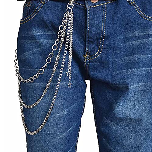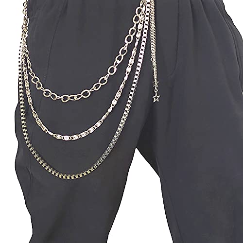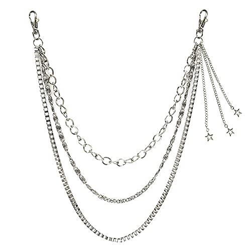Xihuimay - سلسلة بنطلون جينز بتصميم جوثيك بانك من شي هوي ماي، سلسلة للجيب والحزام متعددة الطبقات، مناسبة للمحفظة والبنطلون والجيبة، سلسلة خصر وسلسلة مفاتيح مناسبة لشنطة اليد للنساء والرجال، فضية, فضي, Mix