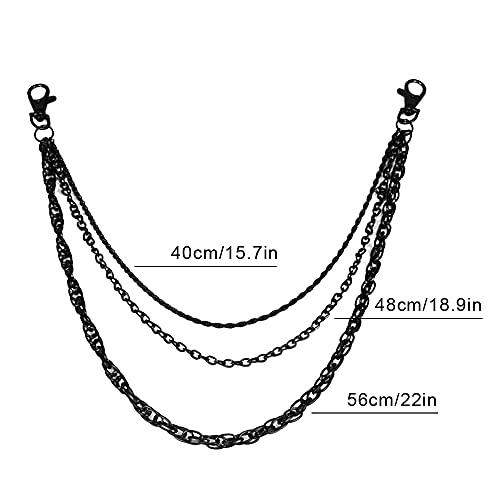 Xihuimay - سلسلة جيب او محفظة متعددة الطبقات لتزيين بنطال الجينز او التنورة ب3 طبقات بتصميم جوثي بانك لحلقة المفاتيح والمحفظة وشنطة اليد للنساء والرجال لون اسود من شيوامي, معدن