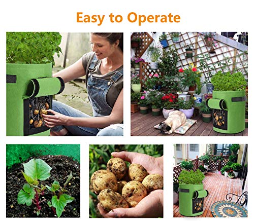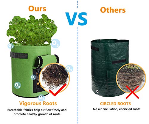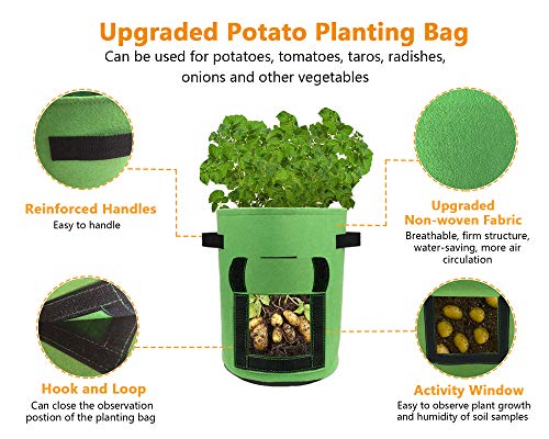 - 【بيئة نمو مثالية】أكياس زراعة البطاطس ملاءمة جدًّا لنمو الخضروات. يسمح تصميم المصنوع من خامة فايبر عالية الجودة وجيدة التهوية للجذور بالنمو بحرية دون تشابك وتفريغ الرطوبة الزائدة مما يضمن للنباتات بيئة نمو مناسبة.