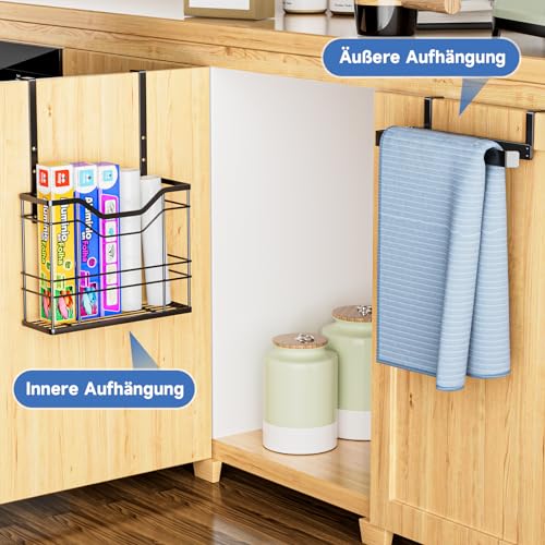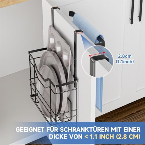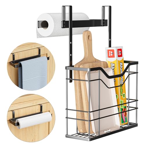XILIMEN - سلة معلقة من اكسيليمين مع حامل منشفة لباب الخزانة معدنية للمطبخ لوح تقطيع منظم مطبخ لتخزين صواني الخبز بلاستيك