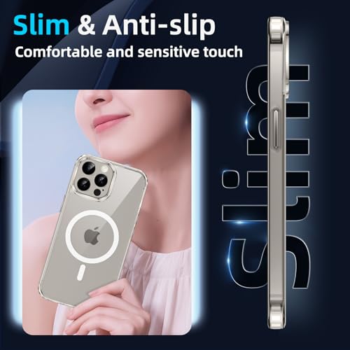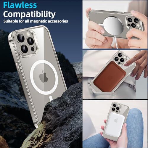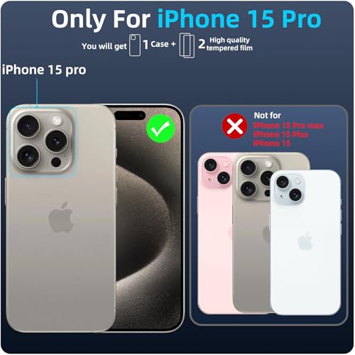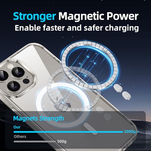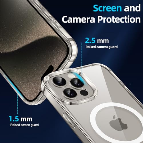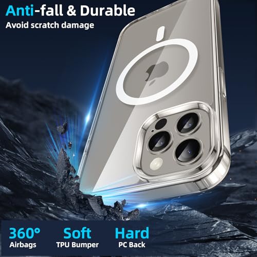 Xiltlly - جراب مغناطيسي من زيلتلي لموبايل ايفون 15 برو مع 2 زجاج مقسى، متوافق مع ماج سيف، جراب ممتص للصدمات نحيف ومتين من البولي يوريثين الحراري، شفاف