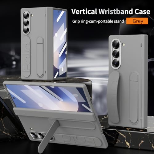 XIMAND - جراب بحماية كاملة للشاشة والعدسات لموبايل سامسونج جالاكسي Z فولد 6 من اكس اي ماند، مضاد للصدمات، جراب بشريط معصم مدمج ومسند، وحماية للمفصلات (رمادي)