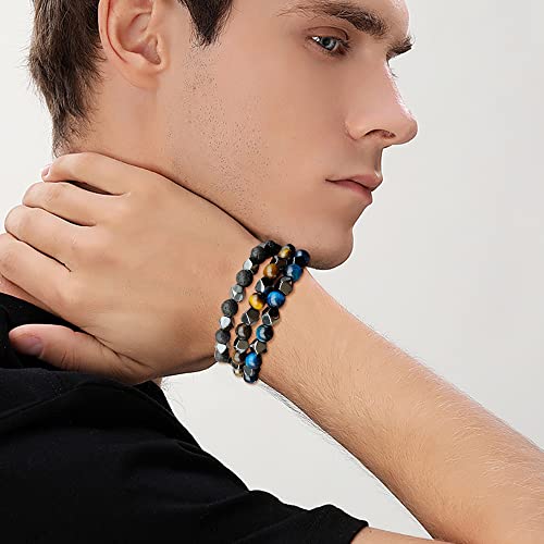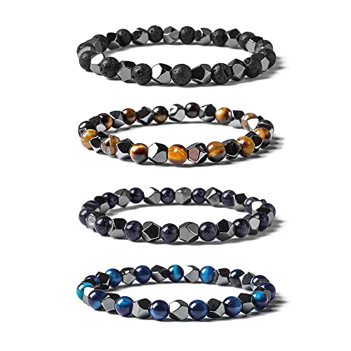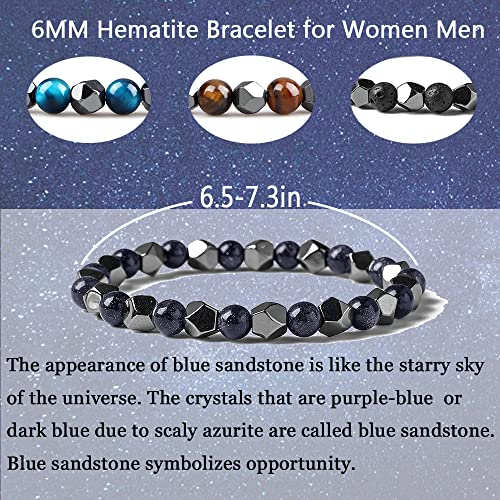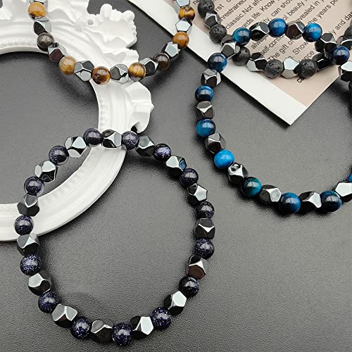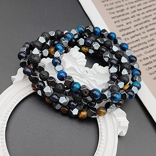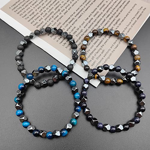 XIMEO - سوار من حجر الهيماتيت مقاس 6 ملم للنساء والرجال - احجار هيماتيت غير منتظمة اساور عين النمر والزجاج البركاني الاسود يوجا علاجي مجوهرات الهيماتايت