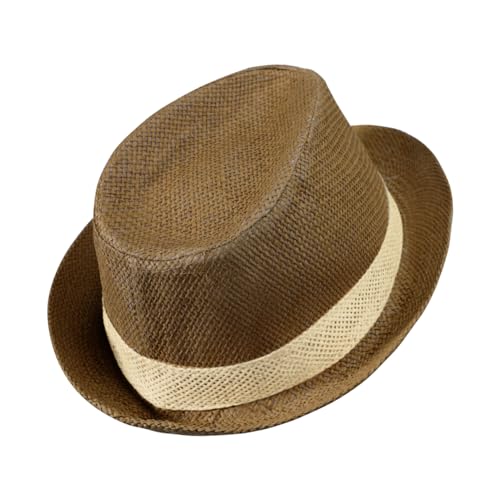XINCHIA - قبعة بنما للرجال من القش فيدورا، قبعة صيفية للشاطئ، قبعة شمس مرنة للحماية من الاشعة فوق البنفسجية، قبعة من القش قابلة للطي، قبعة كاوبوي للصيف، قبعة جاز بحافة قصيرة 56-58 سم