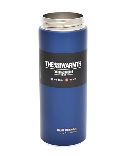Xinehou - زجاجة حرارية معزولة بتفريغ الهواء من الفولاذ المقاوم للصدأ مع غطاء، مناسبة للسفر والرياضة والأنشطة الخارجية والمشروبات الباردة والساخنة من شينهو، متعددة الالوان، 500 مل، لون كحلي، موديل XZ-7757