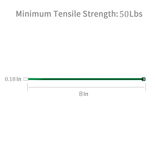 XINGO - أربطة كابلات شديدة التحمل من شينغو، أربطة أسلاك بلاستيك من النايلون الممتاز مع قوة شد 23 كيلوجرام، أربطة بسوستة من النايلون الأسود ذاتية الغلق للاستخدام الداخلي والخارجي (20 سم، لون أخضر) 100 قطعة