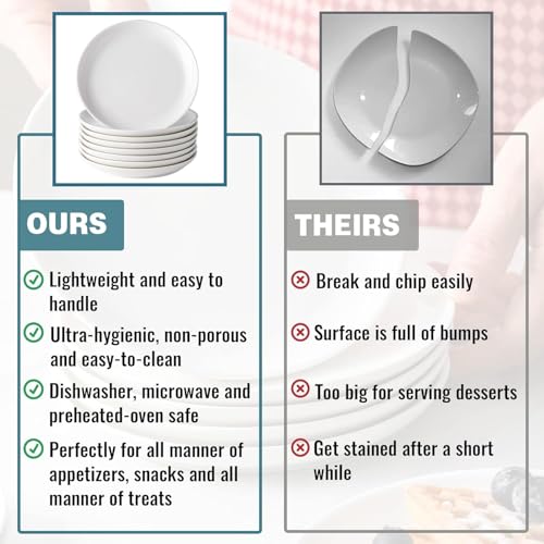 - أطباق صغيرة - مع مجموعة الأطباق يمكنك جعل إبداعاتك مكافأة للحنك والعينين - حتى خبز الجبن. استخدم الأطباق الثمانية كأطباق عشاء صغيرة للإفطار وأطباق السلطة والوجبات الخفيفة والحلوى.