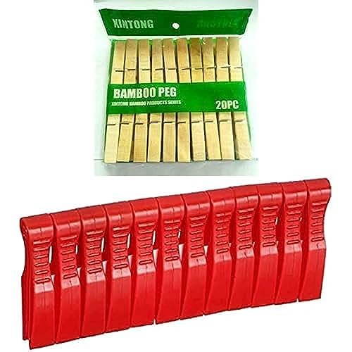 Xintong - مشابك غسيل خشب مكونة من 20 قطعة + مساند عصا عمودية بلاستيكية على شكل تمساح من زينتونج - 12 مجموعة - الوان متنوعة